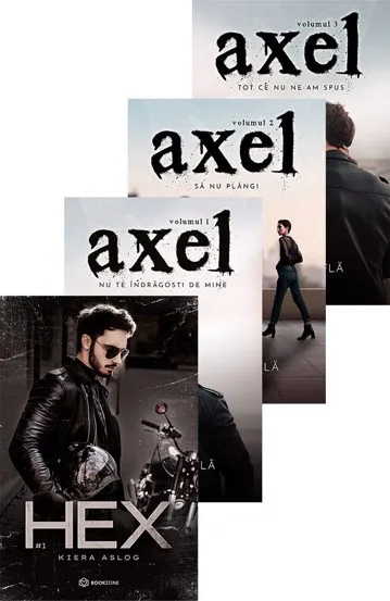 HEX Vol.1Doi cei mai buni prieteni, doi foști iubiți, trei inimi frânte Hex este povestea băiatului care a ucis soarele și luna.După ce se întoarce în orașul natal, Hex Zhelezkin este pus în situația de a-și confrunta, din nou, trecutul care continuă să îi macine gândurile. Moartea iubitei sale, Sunny, trezește în acesta vechi răni ce nu s-au cicatrizat încă, iar bătălia ce ia naștere în sufletul său, între rațiune și noile sentimente față de Luna, îl determină să facă cele mai grele alegeri din viața sa.În lupta dintre ce e bine și ce e rău, calea de mijloc pare cea mai distrugătoare.Kiera Aslog în cifre41.892 de exemplare vândute3 milioane de lecturi pe WattpadPachet Axel Axel nu este doar o carte. Este povestea destinului pierdut în întuneric, care încearcă să-și regăsească drumul către lumină. Un roman magistral care încapsulează în paginile sale talentul inconfundabil al Damei de Treflă. Trei volume în care frumusețea și fragilitatea vieții lui Axel rescriu prezentul și-i oferă speranță viitorului.Inimi instabile, iubiri ce îndoaie suflete de durere, pasiuni înflăcărate, un trecut aparent uitat, dar care iese la suprafață mai puternic și mai periculos decât oricând. Axel, un tânăr elev aparent liniștit din Iowa, își trăiește fiecare zi fără speranța de a o mai avea și pe următoarea. Totul a început cu patru ani în urmă, când fratele său avea nevoie să fie salvat. Axel și-ar fi dat propria viață pentru fratele său. Dar nu a putut. Iar acum trebuie să trăiască într-o familie zdruncinată de tragedie, cu sufletul încolțit de acest gând în fiecare zi a vieții sale.Nici măcar timpul petrecut într-un centru de recuperare nu îi reînvie dorința de a trăi, deși ironia face ca acesta să se numească Hope House, iar acolo să pornească într-o aventură alături Alice, o tânără vulcanică și instabilă, în Țara Nebunilor. Axel începe să se adapteze la momentele petrecute împreună cu Alice, însă izolarea și trecutul cu care se confruntă Alice sunt încă o picătură în oceanul presiunilor și responsabilităților unei vieți pe care pur și simplu nu vrea să o mai trăiască.Când credea că a pierdut totul, Axel întâlnește mâna întinsă a Annei, care încearcă să îl salveze din vâltoarea destinului său. Dar poți salva cu adevărat pe cineva care nu își dorește să fie salvat?